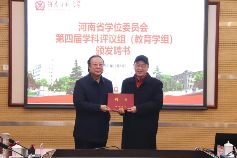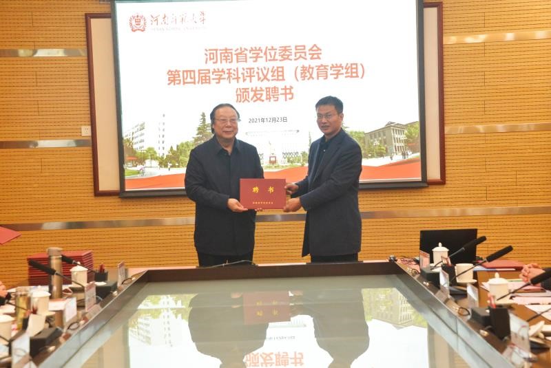 会上,河南师范大学党委书记、教育学科评议组召集人赵国祥教授为beat365官网院长何安明教授、张茂林教授等专家组成员颁发聘书。