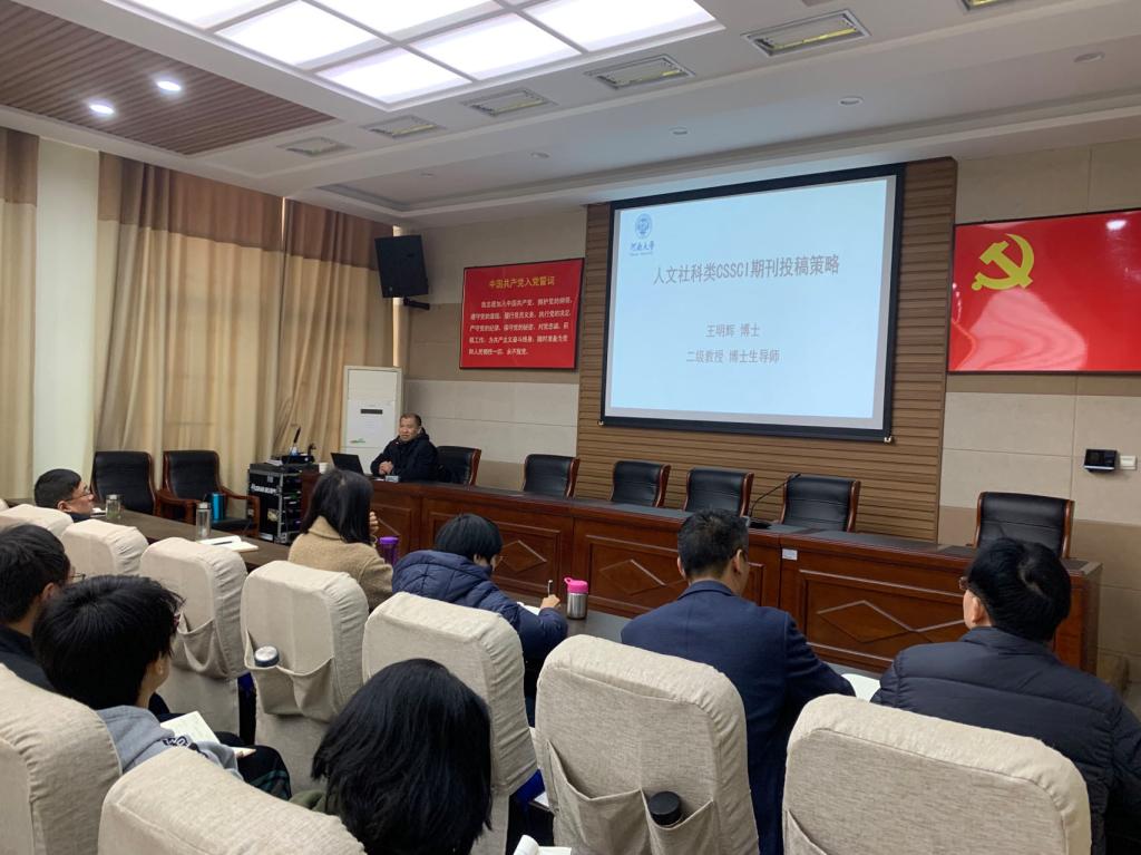 时间:2023-12-03 12:12:04 来源: 作者: 阅读: 次12月3日上午,应beat365英国官网网站邀请,河南大学王明辉教授在教科楼301报告厅作题为“人文社科类CSSCI期刊投稿策略”的学术报告。报告会由该院院长何安明主持,教科院全体教师及部分研究生聆听了报告。