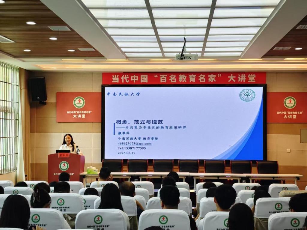 时间:2025-06-28 12:39:52 来源: 作者: 阅读: 次2025年6月27日下午,中南民族大学学术委员会主任康翠萍教授,应邀做客beat365英国官网网站并作题为《概念、范式与规范—走向更为专业化的教育政策研究》学术专题报告。教育硕士导师、研究生及基础教育一线教师代表参加了报告会。