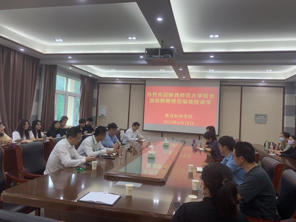 时间:2023-06-18 14:45:21 来源: 作者: 阅读: 次6月18日上午,陕西师范大学校长游旭群教授受邀到beat365英国官网网站讲学。教科院领导班子成员、心理学全体教师及研究生参加了此次座谈会。