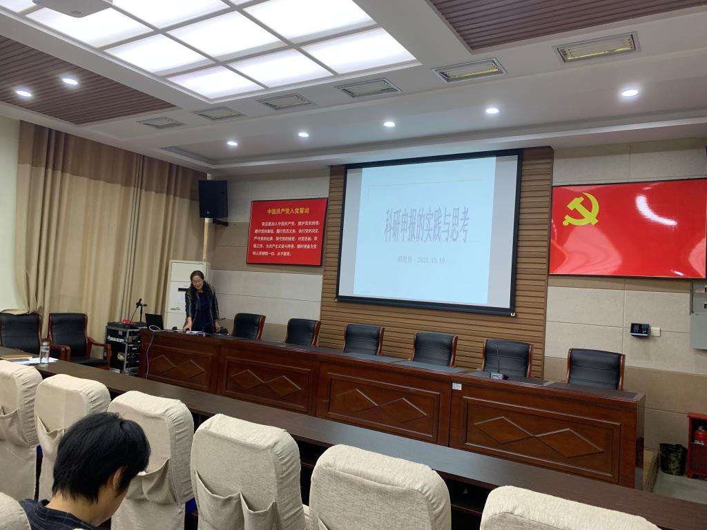 会上,邢教授首先从题目选择、内容撰写、成员构成、前期基础等方面进行汇报。之后结合自身科研经历,从多写多练——不在意结果;持续坚持——研究延续;开放咨询——跳出局限;结合所长——熟悉领域进行了经验分享。最后,她指出科研是个长期坚持的过程,需要坚守,需要不断打磨。