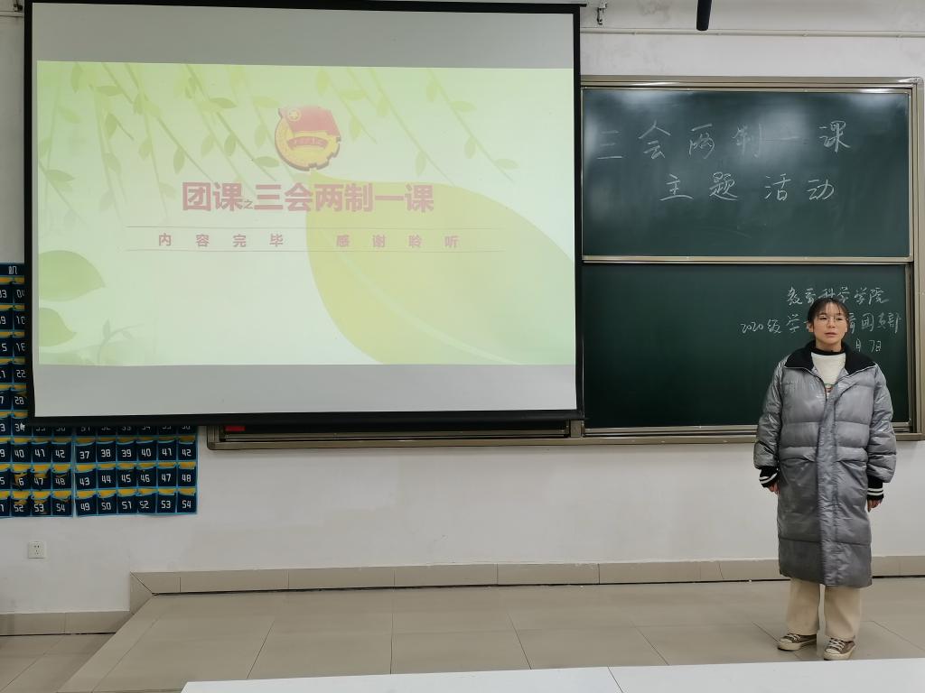 活动伴随着嘹亮的中国共青团团歌拉开了序幕。各班团支书对“三会两制一课”的内容、意义、要求进行详细讲述,并从共青团的基础知识出发,讲解共青团的组织原则和纪律的自觉性、强制性,指出共青团员的任务、权力和义务。此外,团支书代表带领全体团员共同观看共青团中央“三会两制一课”的相关视频,使全体团员对“三会两制一课”会议精神、从严治团有更深的理解。与会团员纷纷表示,“三会两制一课”是共青团增强政治性、先进性、群众性的必然要求,作为共青团员应认真落实团组织给予的要求,起好模范带头作用,做好联系青年群众的桥梁和纽带。