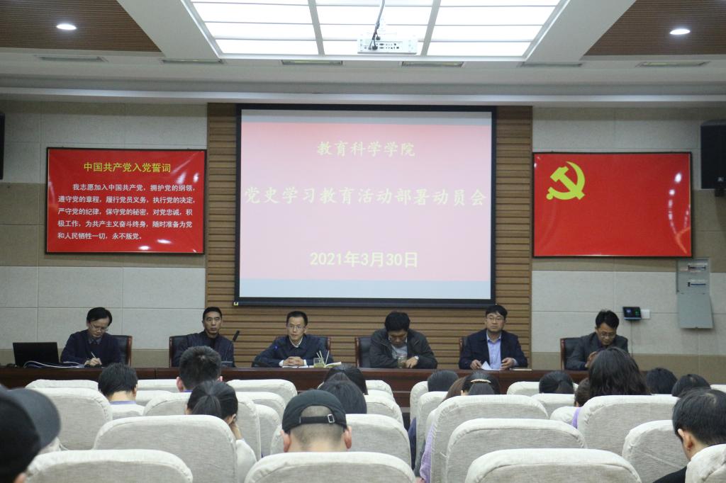 时间:2021-04-01 09:57:59 来源: 作者: 阅读: 次为深入学习习近平总书记在党史学习教育动员大会上的重要讲话精神和中央、省委的决策部署,落实学校党史学习教育动员部署会要求,3月30日,beat365英国官网网站在教科楼301会议室召开党史学习教育动员部署会,学院全体教职工参加此次会议。会议由党委书记李辉主持。