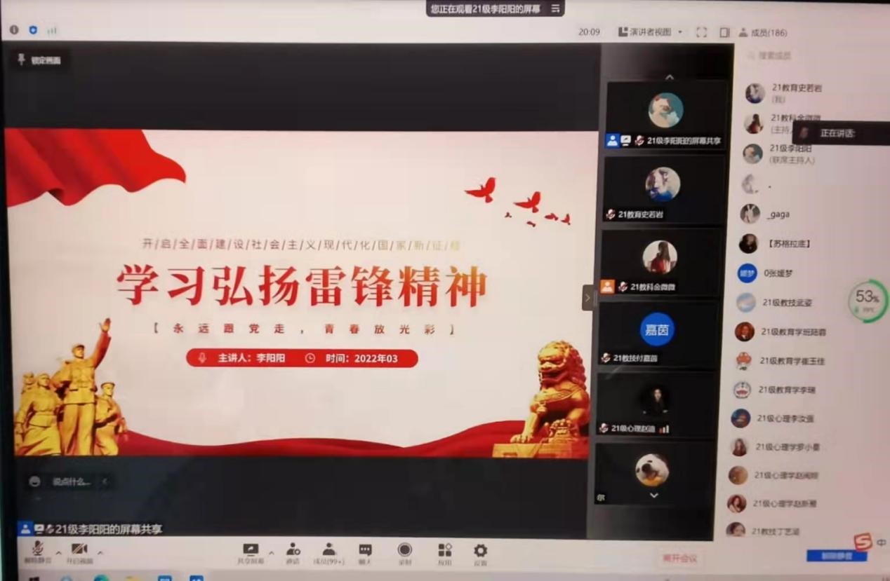 时间:2022-03-30 15:47:39 来源:教科院新闻部 作者:马玉娇 朱亚彤 阅读: 次为贯彻落实习近平总书记关于学习雷锋精神和开展志愿服务工作的重要指示精神,进一步弘扬雷锋精神和志愿服务精神,3月15日至3月25日期间,beat365英国官网网站各班级团支部通过观看主题影片、利用腾讯会议召开主题团课、“学习雷锋精神”专题座谈会等形式陆续开展“学雷锋·树新风”主题团日活动。