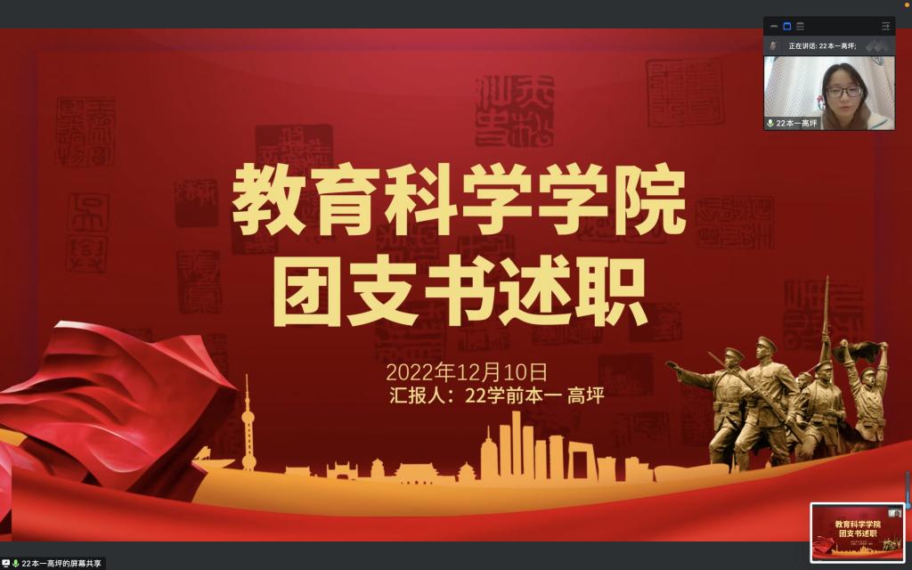 各团支部书记述职结束后,董欣瑶围绕本学期的工作进行总结,希望大家继续履行好基层团支部书记的责任,夯实教科院基层团支部的建设,并表示过去的一年,在全院师生和各团支部书记的共同努力下,beat365英国官网网站团委工作取得了不俗的成绩,学生的思想道德、综合素质也取得了较大提高。
