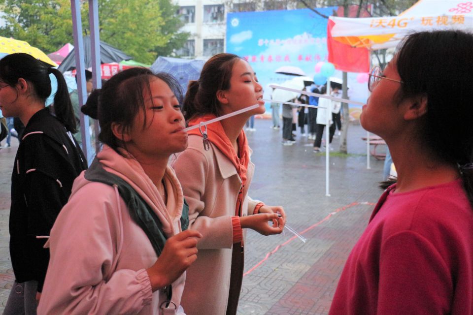 此次游园会活动以“解开心灵千千结”为主题,并由三个环节组成,以打卡的方式进行,参与者在每个游戏中取得胜利则表示打卡成功,将获得精美礼品。活动开始后,同学们纷至沓来,积极参与游戏。这些游戏有趣而且富有意义,引得现场欢笑声不断,氛围十分热烈。其中,“报纸拔河”很好地疏解了同学们紧张畏惧的情绪,帮助他们释放了压力;“吸管传递”不仅提高了同学们的灵敏度,还培养了其团结合作的精神。最后,活动在同学们的笑声中落下帷幕。