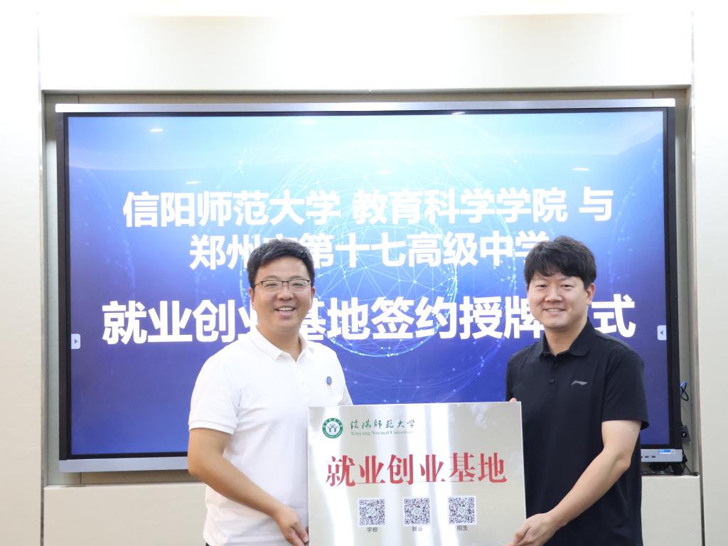 缑星代表学院分别与各用人单位签署校企合作协议,并向郑州市第十七高级中学、河南省生之涯教育科技有限公司、澳德菲尔工程科技(河南)有限公司授予“beat365英国官网网站就业创业基地”牌匾。