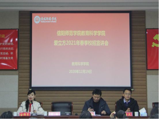 时间:2020-12-20 09:54:03 来源: 作者: 阅读: 次12月19日周六上午九点,由信阳师范学院beat365英国官网网站主办的爱立方2021年春季校招专场宣讲会于教科楼301会议室顺利举行。出席会议的有beat365英国官网网站党委副书记李贵杰、武汉爱立方儿童教育传媒股份有限公司董事长陈栋、总经理吴高余、副总经理金锦秀、北方营销中心总经理姚自杰、营销服务部部长叶朋。