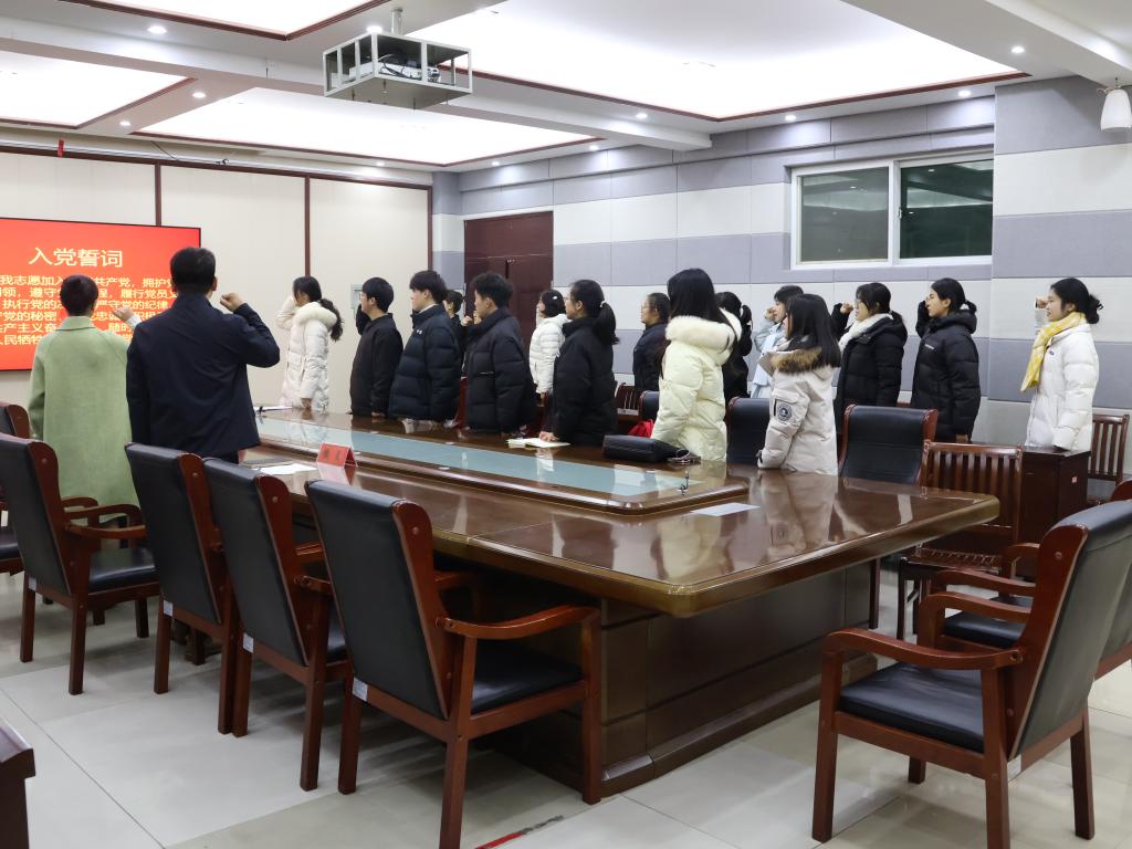 会议在庄严的《国际歌》下拉开帷幕,全体人员起立,威严且庄重。在田园的带领下,全体与会人员重温了入党誓词,进一步坚定了理想信念和党性意识,激发了与会人员的爱国热情。随后,预备党员优秀代表王雪在会上发言,表示要时刻以共产党员的标准严格要求自己,践行党的神圣使命,激励了在场的每一位同志。院党委副书记缑星进行讲话,对新发展的党员表示祝贺,并提出了殷切期望和要求。他强调,党员们要坚定理想信念,遵守党纪和国家法律法规,加强道德修养,积极践行社会主义核心价值观,并继续加强理论学习,提升党性修养,积极发挥先锋模范作用,维护集体利益。会议最后,缑星为新发展的党员佩发了党员徽章,象征着他们正式成为党组织的一员,肩负起更大的责任和使命,激励他们踔厉奋发、勇毅前行,以行动践行初心使命,以青春之力推动民族复兴伟业。