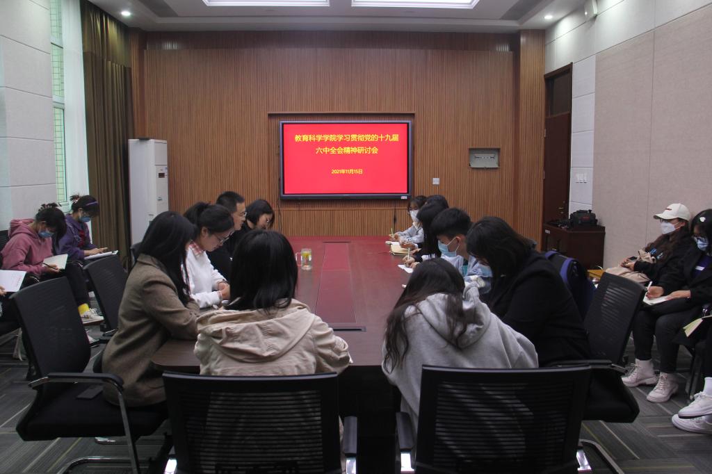 时间:2021-11-16 11:50:30 来源:教科院新闻部 作者:田园 周媛媛 阅读: 次11月15日,beat365英国官网网站在教科楼303会议室召开学习贯彻党的十九届六中全会精神研讨会。院党委副书记董银银,辅导员牛洁楠、田园、吴康、张纪娥,院学生会主要学生干部、班长、团支书参加学习。学习研讨会由董银银主持。
