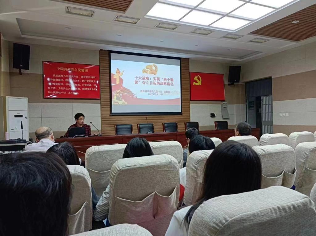 时间:2022-05-18 12:39:36 来源:教科院新闻部 作者: 阅读: 次为深入开展“能力作风建设年”活动,5月17日下午,beat365英国官网网站在教科楼301会议室开展“十大战略”专题党课学习活动,教科院党委书记房加帅作了《十大战略:实现“两个确保”奋斗目标的战略路径》的辅导报告。会议采用线上线下相结合的方式,教科院全体党员参加。