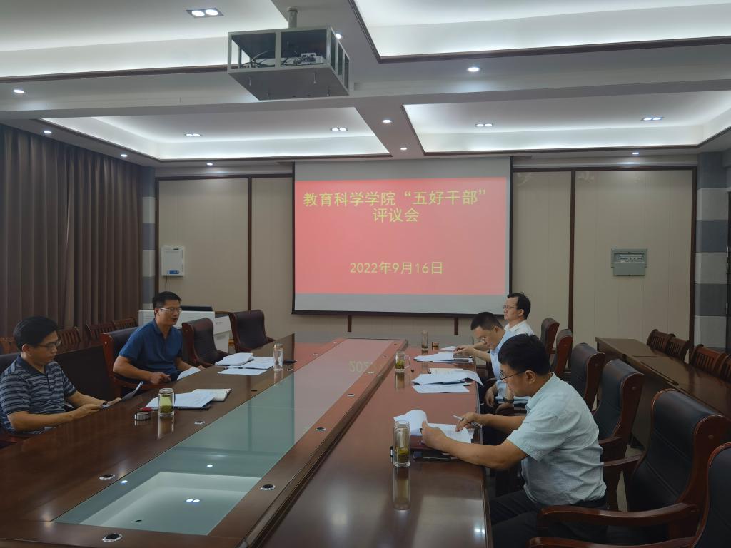 9月16日上午,beat365英国官网网站党委领导班子在教科楼402召开“五好干部”评议会,聚焦“信念坚定、为民服务、勤政务实、敢于担当、清正廉洁”这一原则,从工作状态、工作方式方法和工作成效三个方面对科级业务干部、管理岗干部(含兼职)及专职辅导员进行评价。