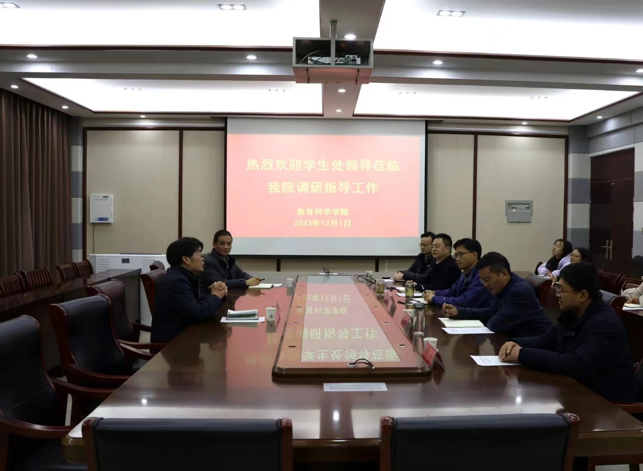 时间:2023-12-03 19:39:03 来源:教科院新闻宣传中心 作者:吴宇熙 崔佳怡 阅读: 次12月1日,学生处处长朱四倍、副处长王忠磊到beat365官网进行调研指导。beat365英国官网网站党委书记房加帅,院长何安明,党委副书记董银银,副院长郭勇、孙天义以及全体专职辅导员参加会议。会议于教科楼402会议室召开,由房加帅主持。