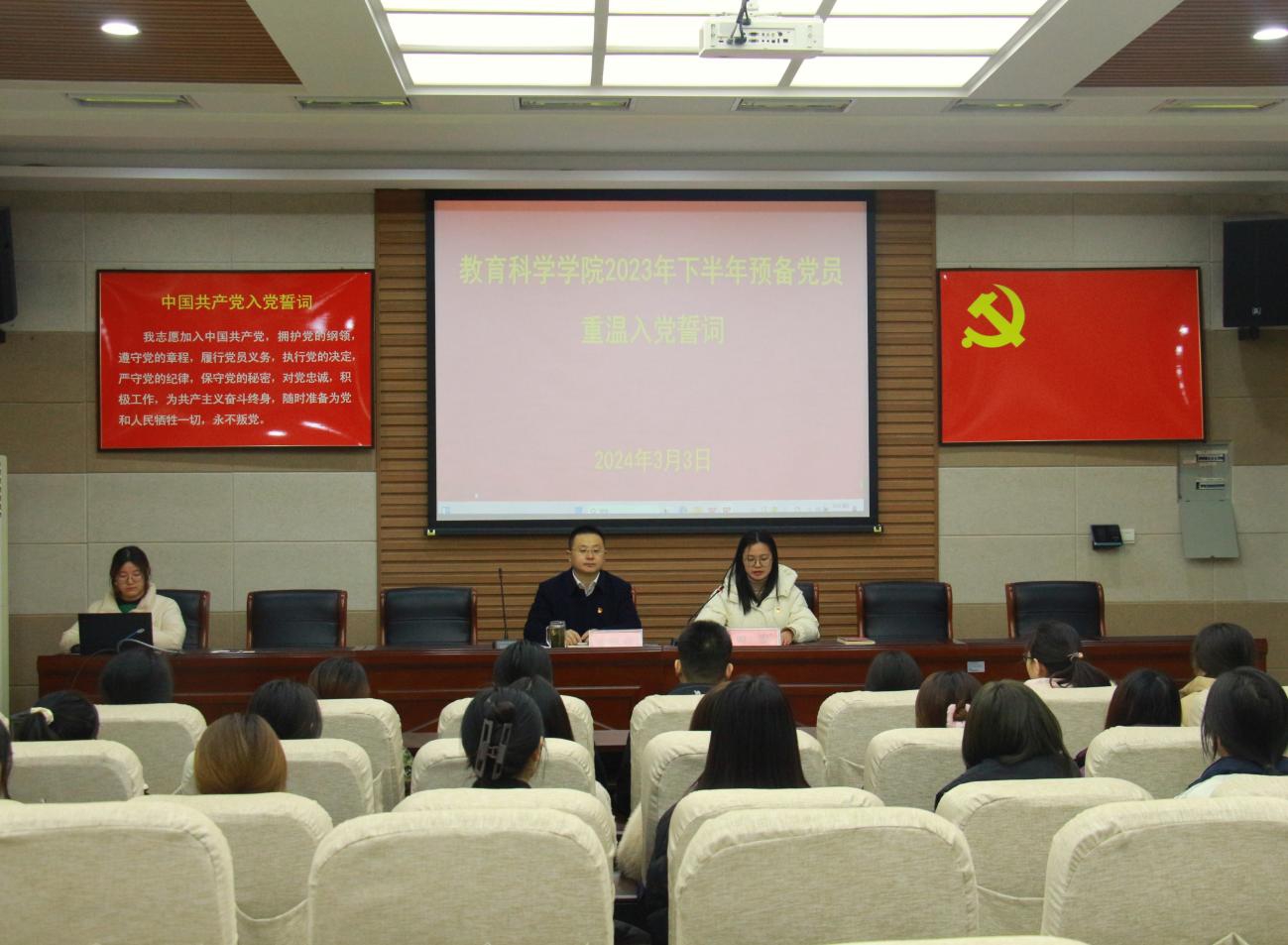 时间:2024-03-03 14:39:23 来源:教科院新闻宣传中心 作者:郭鑫瑶 吴皓 阅读: 次3月3日,beat365英国官网网站于教科楼301会议室举行2023年下半年预备党员重温入党誓词大会。beat365英国官网网站党委副书记董银银、专职组织员田园、全体预备党员参与此次大会。