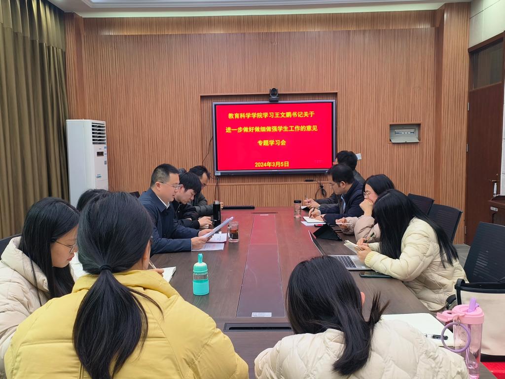 会上,董银银首先传达了学校新学期学生工作会的会议精神,全体专兼职辅导员共同学习了校党委书记王文鹏《关于进一步做好做细做强学生工作的意见》。随后,董银银全面总结了2023年学院学生工作,并结合学校2024年学生工作要求,对新学期学院学生工作重点任务进行部署:一是要把握新形势,转换思路打开格局,创新工作方法;二是要以学生为中心,深入宿舍、食堂等,增强与学生的沟通交流,在工作中协调好学生教育管理与学生服务之间的关系;三是要多措并举加强学风建设,严抓学生上课迟到、玩手机等现象,创建优良学风;四是要增强学生工作的实效性,主动担当作为,坚守安全稳定底线。会后,beat365官网姜金伟博士就班主任与学生沟通问题为全体班主任做辅导报告。