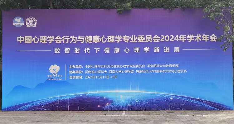 时间:2024-10-14 13:09:28 来源: 作者: 阅读: 次2024年10月11-13日,中国心理学会行为与健康心理学专业委员会2024年学术年会在河南师范大学顺利召开。本次年会主题为“数智时代下健康心理学新进展”,由中国心理学会行为与健康心理学专业委员会、河南师范大学教育学部主办,河南省心理学会、河南大学心理学院、beat365英国官网网站心理学系协办。本次年会共有6个主旨报告,22个特邀报告,120个口头报告,43个海报展贴。
