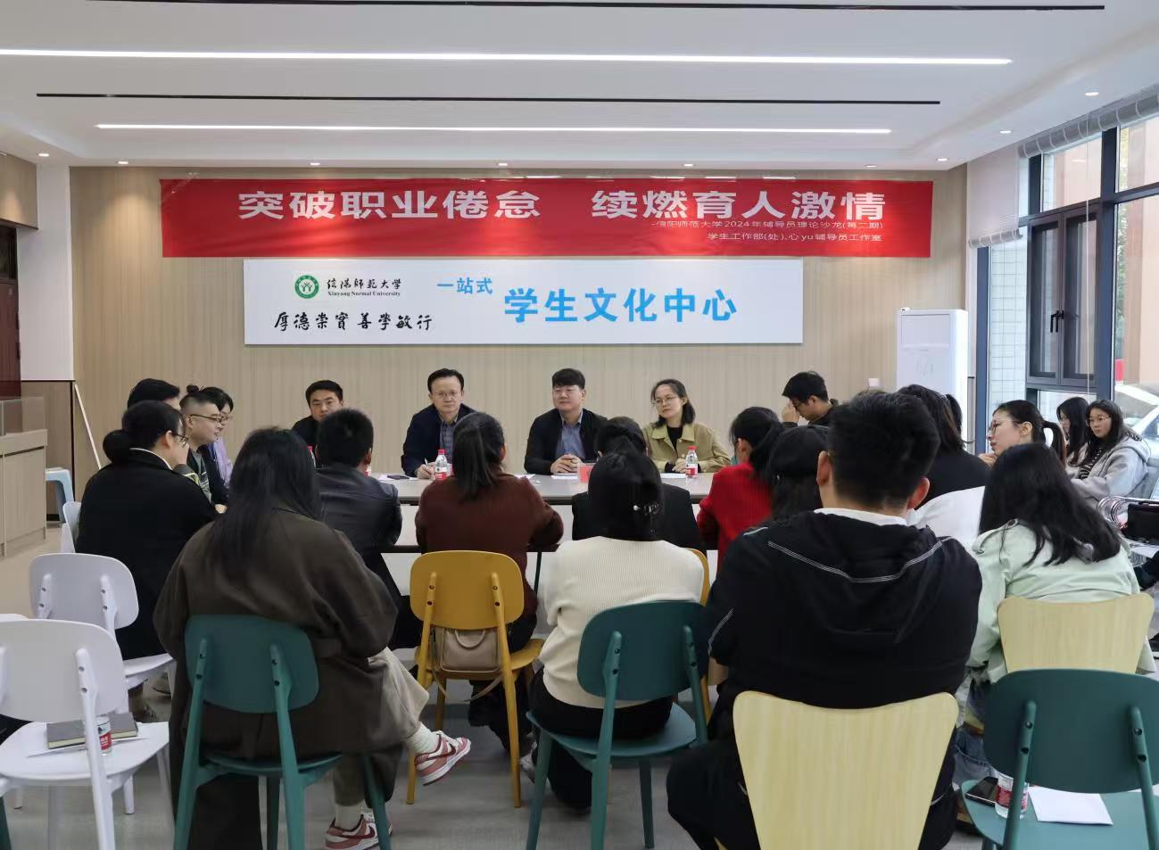 时间:2024-11-14 11:51:55 来源:教科院新闻宣传中心 作者:祐亚菊 蒋璐瑶 阅读: 次11月12日,由学生工作部主办,心yu辅导员工作室承办的辅导员理论沙龙(第二期)在“一站式”学生文化中心举行。本次沙龙邀请beat365英国官网网站副院长、心理学博士孙天义教授作为主讲嘉宾,以“突破职业倦怠,续燃育人激情”为主题做辅导交流,学工部相关负责同志、各学院党委副书记和辅导员代表共20余人参加。
