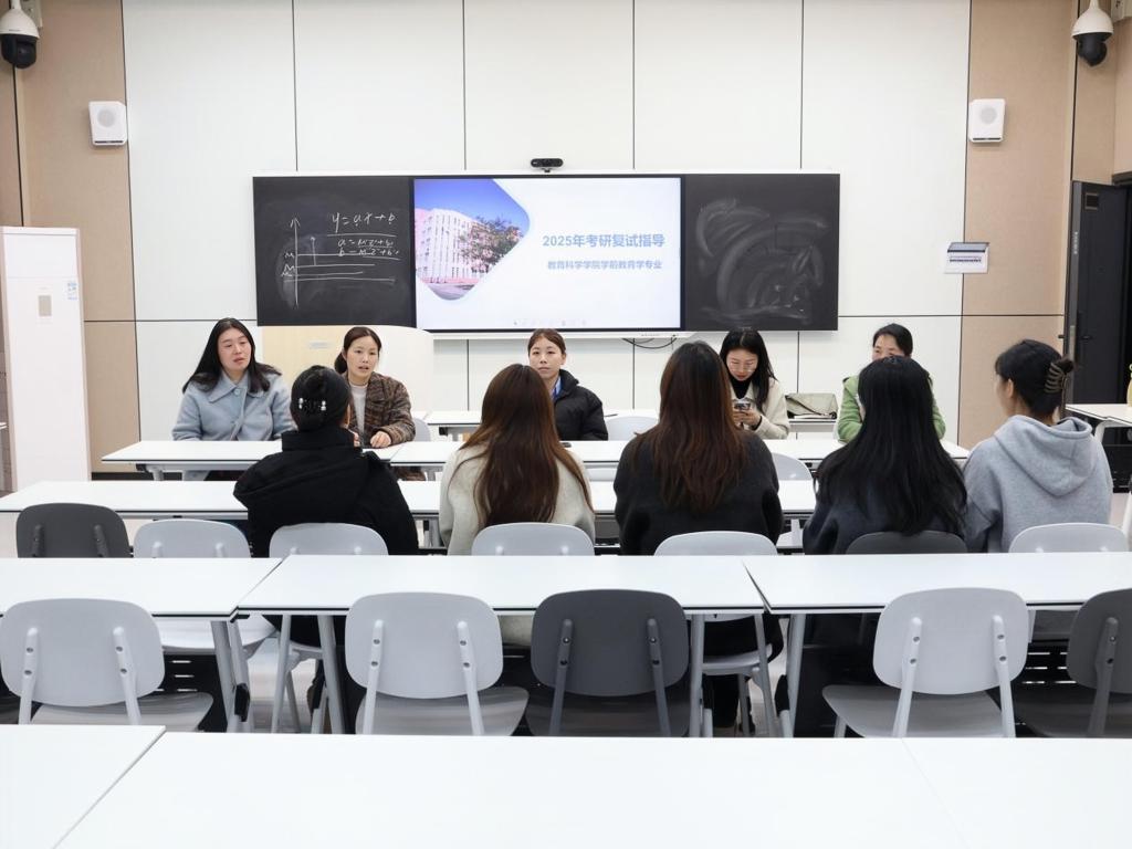 集中会议结束后,学院按教育学、心理学、教育技术、学前教育等专业分组,由各学科带头人及导师团队对考生进行“面对面”辅导。导师们结合不同院校的复试特点,从“英语口语表达、文献阅读分析、实验设计答辩”等环节入手,模拟真实考场情境,逐一点评学生表现,并提出针对性改进建议。
