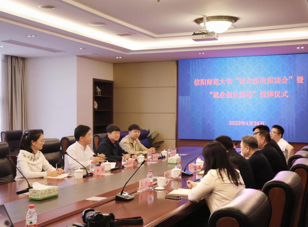 在座谈中,信阳同合车轮副总经理王治纲、信阳广明再生资源有限公司董事长孙辉通过宣传片展示等方式分别介绍了企业发展历程、核心业务布局、技术研发实力及企业文化内核。房加帅详细介绍了近年来校院发展情况,涵盖学院学科专业布局、师资队伍建设、人才培养成效及2025届毕业生结构特点,重点阐述了学院在实践教学与创新创业教育方面的特色优势,并向企业表达了深化产学研合作、拓展就业渠道的诚挚意愿,双方围绕人才培养方向、岗位需求对接等议题展开深入交流。