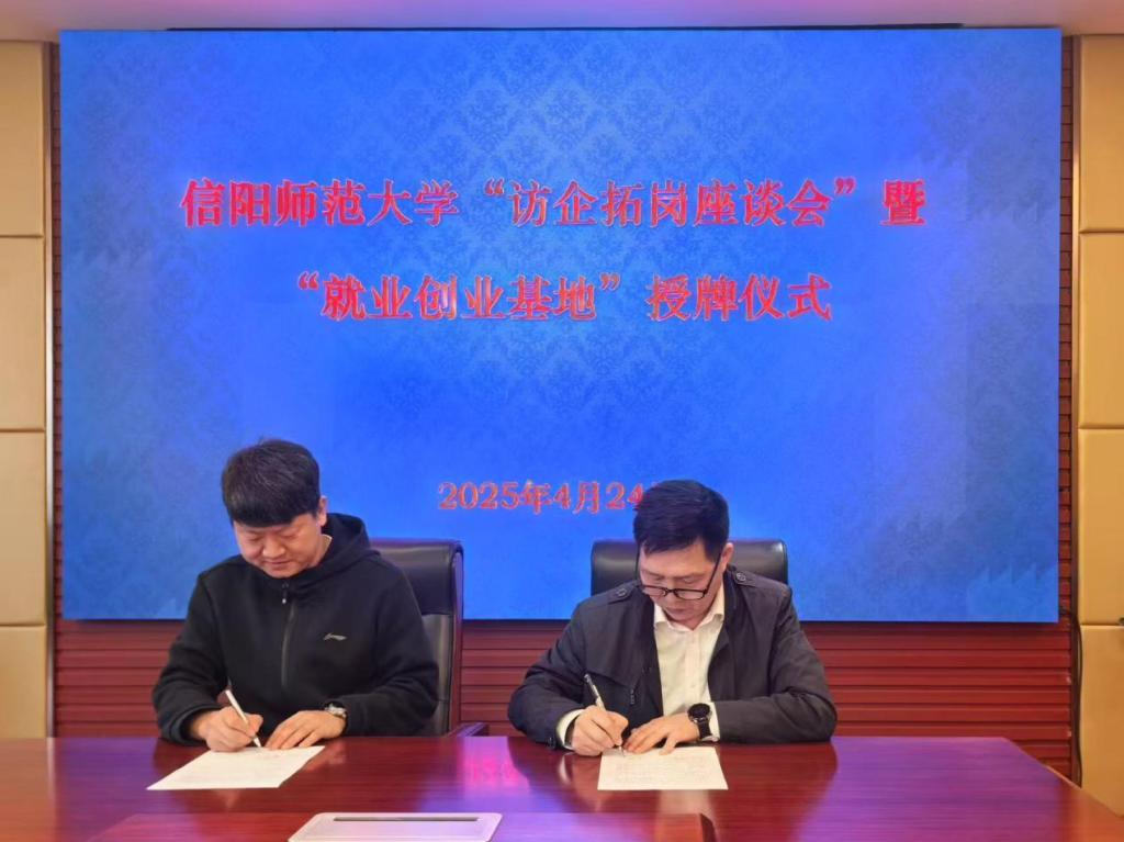 缑星代表学院与信阳同合车轮有限公司人事部经理杨召利签订了合作协议书,房加帅代表学校授予“beat365英国官网网站就业创业基地”牌匾。