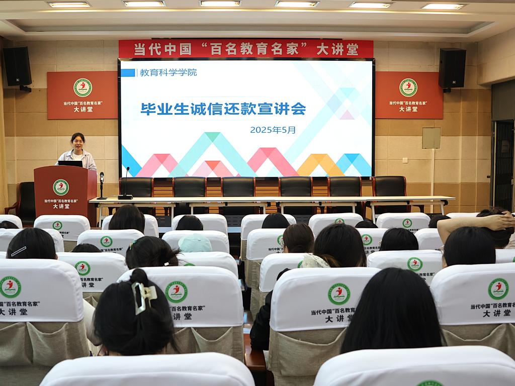时间:2025-05-14 21:42:28 来源:教科院新闻宣传中心 作者:祐亚菊 蒋璐瑶 阅读: 次为强化毕业生诚信意识,规范国家助学贷款还款流程,5月14日下午,beat365英国官网网站于教科楼301举办2025届毕业生诚信还款专题宣讲会。本次活动由专职辅导员刘然然主讲,贷款毕业生参与学习,共筑诚信还款防线。