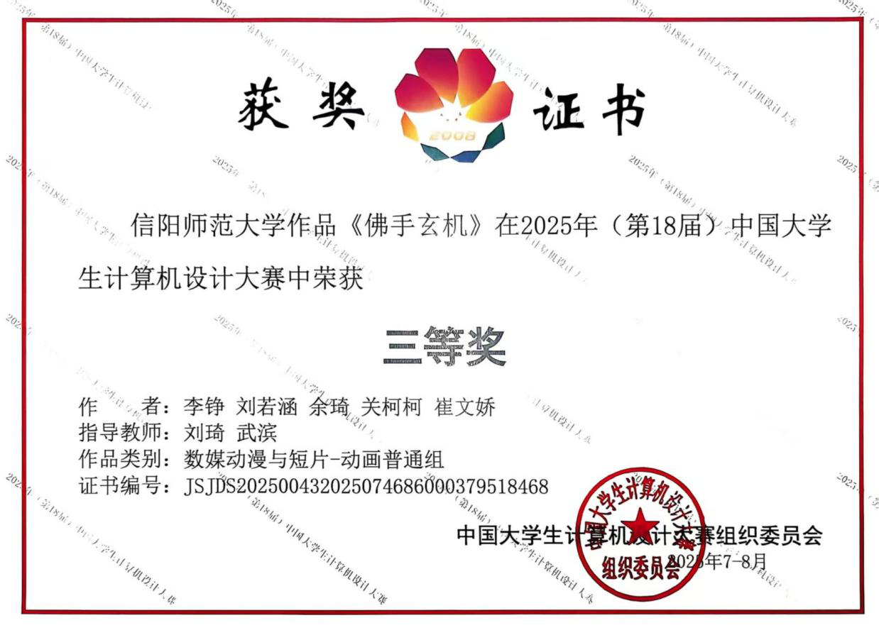 时间:2025-09-02 13:07:21 来源:教科院新闻宣传中心 作者:吴皓 杨泽钰 阅读: 次近日,2025年(第18届)中国大学生计算机设计大赛全国总决赛圆满落幕。beat365官网师生积极参与,组织了两支队伍分别参加不同赛区的角逐。7月22日—26日,由张立春老师带队,前往南京南决赛区参加微课与AI辅助教学类别比赛;8月13日—17日,由刘萱老师带队在南京东决赛区(东北师范大学)参与数媒动漫与短片类别比赛。经过激烈的比拼,beat365官网共斩获二等奖两项、三等奖一项。