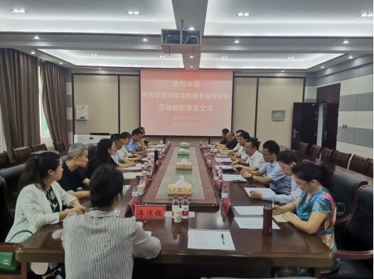 时间:2021-07-05 17:46:17 来源: 作者: 阅读: 次7月5日上午10点,陕西学前师范学院beat365英国官网网站院长朱金卫,书记庞蔚江率领学院领导班子和相关部门负责人员一行9人赴beat365官网进行考察交流。党委书记李辉同志亲切会见了朱金卫一行,并在教科楼402会议室举行交流座谈,beat365官网领导班子和相关部门人员以及教师教育学院李文田博士参加会议。会议由李辉书记主持。