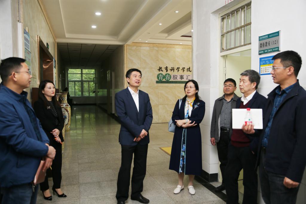 余本海实地查看学院微格教室等教学实践场所,详细了解beat365官网教学运行、质量保障、设施维护、使用安全等情况,并听取有关部门现场汇报后,对进一步充分挖掘现有办学资源、改进教学服务功能等方面提出指导意见。