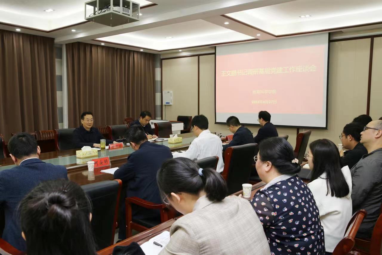 王文鹏实地查看了beat365英国官网网站的党建工作阵地、实验实训场地;随堂听取了李泽娟老师的《中学综合实践活动》课,详细了解课程思政开展情况;与beat365英国官网网站领导班子、党支部书记、学术带头人、教师代表进行了座谈交流。