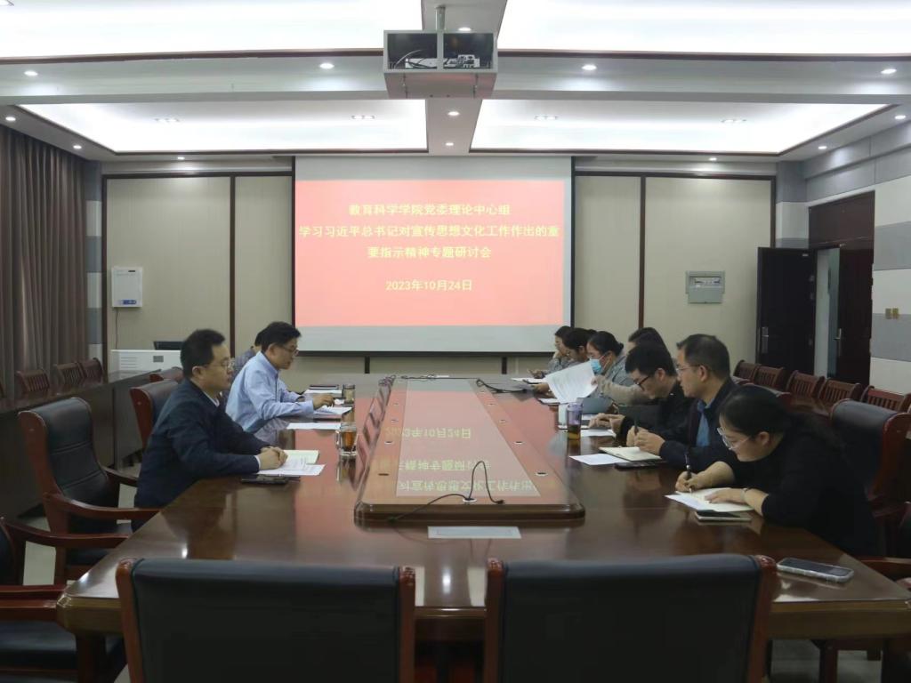 时间:2023-10-25 09:21:57 来源:教科院新闻宣传中心 作者:郭鑫瑶 吴皓 阅读: 次10月24日,beat365英国官网网站党委理论学习中心组于教科楼402会议室召开学习习近平总书记对宣传思想文化工作作出的重要指示精神专题研讨会。院党委书记房加帅、院党委副书记董银银、副院长孙天义及中心组全体成员参加本次会议。会议由房加帅主持。