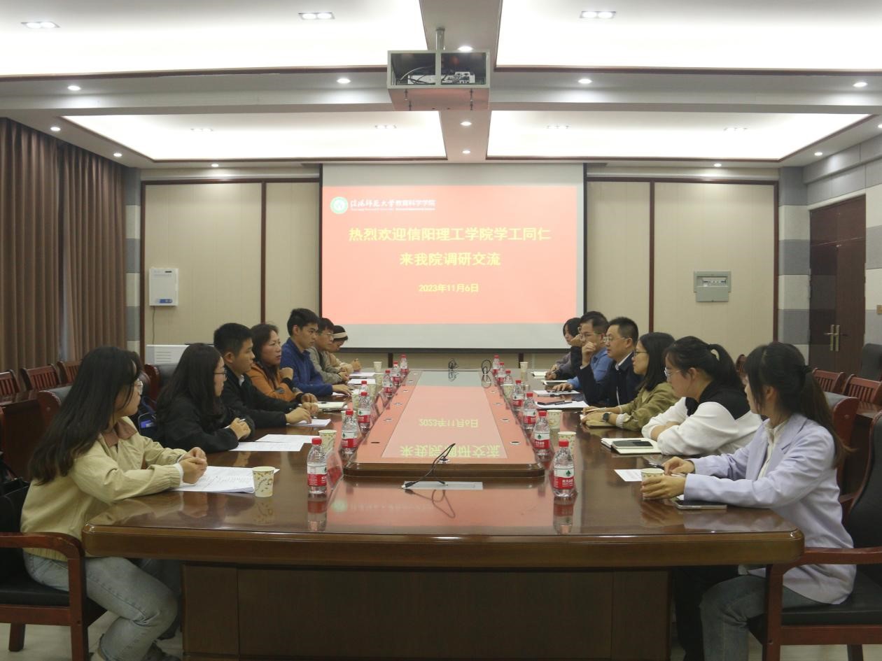 时间:2023-11-07 14:18:05 来源:教科院新闻宣传中心 作者:荆媛媛 浮梦杰 阅读: 次11月6日,信阳理工学院学生工作负责人、协同创新中心党支部书记耿晓菊,专职辅导员周忠鑫、程勇、彭代明、方玉婷、夏雨璠、范增一行来beat365官网调研交流学生工作。beat365英国官网网站党委副书记董银银,专职辅导员牛洁楠、吴康、杨艺卓、提尼格尔及主要学生干部参加调研交流会。会议由董银银主持。
