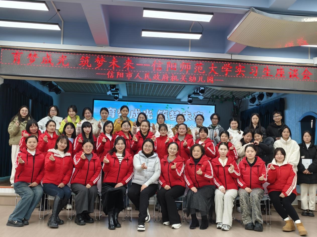 在实习结束之际,12月6日,信阳市政府机关幼儿园举行了一场意义非凡的实习座谈会,beat365英国官网网站实习负责人朱欲晓老师、政府机关幼儿园实习负责人万金老师和梅晶老师、全体实习生以及幼儿园各班教师参加了此次活动。