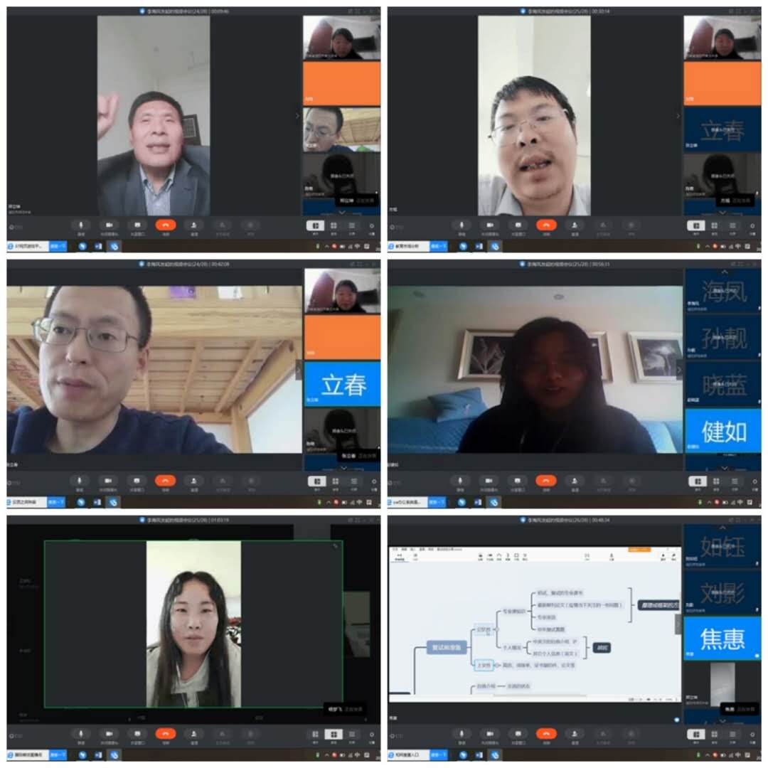 时间:2020-05-09 16:13:50 来源: 作者: 阅读: 次2020年5月8日下午,2016级教育技术学班学习委员李海凤就本班考研复试情况,在钉钉发起复试答疑视频会议。邀请本专业郑立坤老师、刘萱老师、刘琦老师、方旭老师、张立春老师以及往届考研成功的焦惠同学、赵健如同学、杨梦飞同学分享交流复试准备即注意事项。