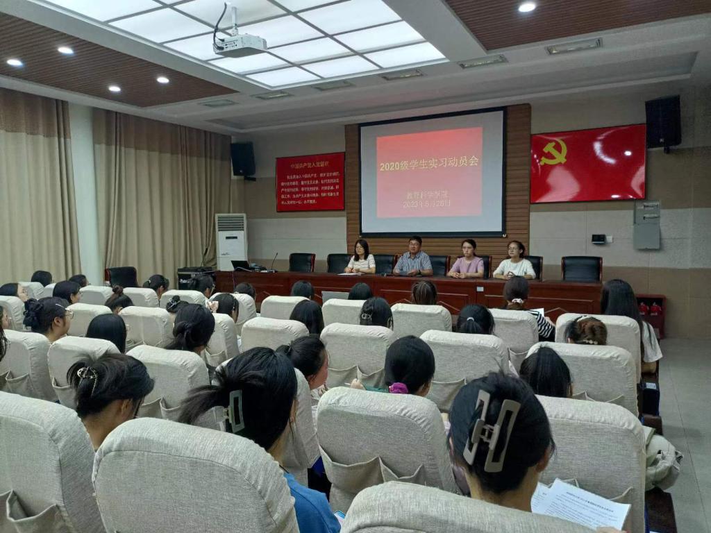 时间:2023-06-27 16:24:10 来源: 作者: 阅读: 次为深入贯彻落实学校关于2020级学生教育实践的通知。2023年6月26日晚上7点,在教科301召开了2020级学生实习动员会。学院领导高度重视学生实习工作,教学副院长郭勇参加了会议并讲话,另外班主任老师也参加了会议。大会由黄伟玲老师主持。