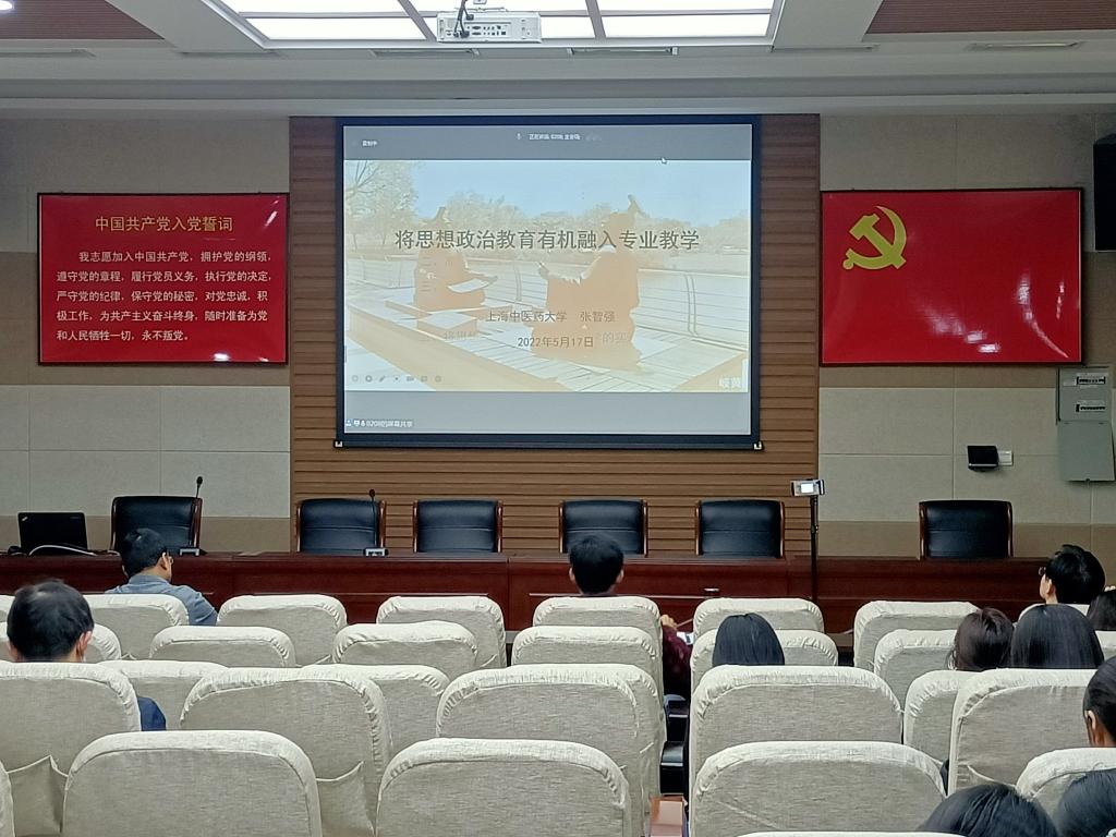 5月17日,beat365英国官网网站在教科楼分会场(301会议室)组织参加“将思想政治教育有机融入专业教学”线上课程思政建设报告会,听取上海中医药大学张智强教授的报告。院长何安明在学校主会场参加会议。院党委书记房加帅,副院长郭勇、孙天义及全体专业教师在教科楼分会场参加会议。报告会由副校长余本海主持。