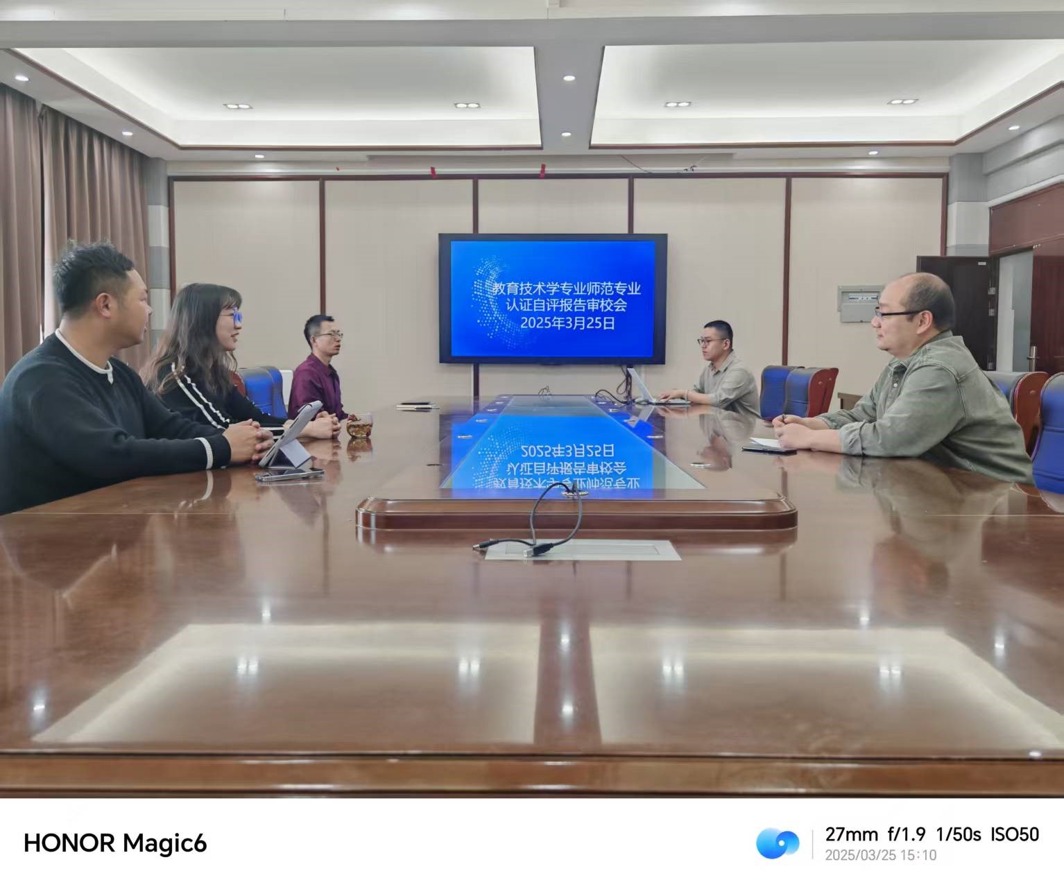 扎实推进师范专业认证工作,确保自评报告质量,2025年3月25日,教育技术学专业开展师范专业认证自评报告审校会,系主任崔宇路,武滨、刘琦、宋晔、张立春老师参加此次会议。